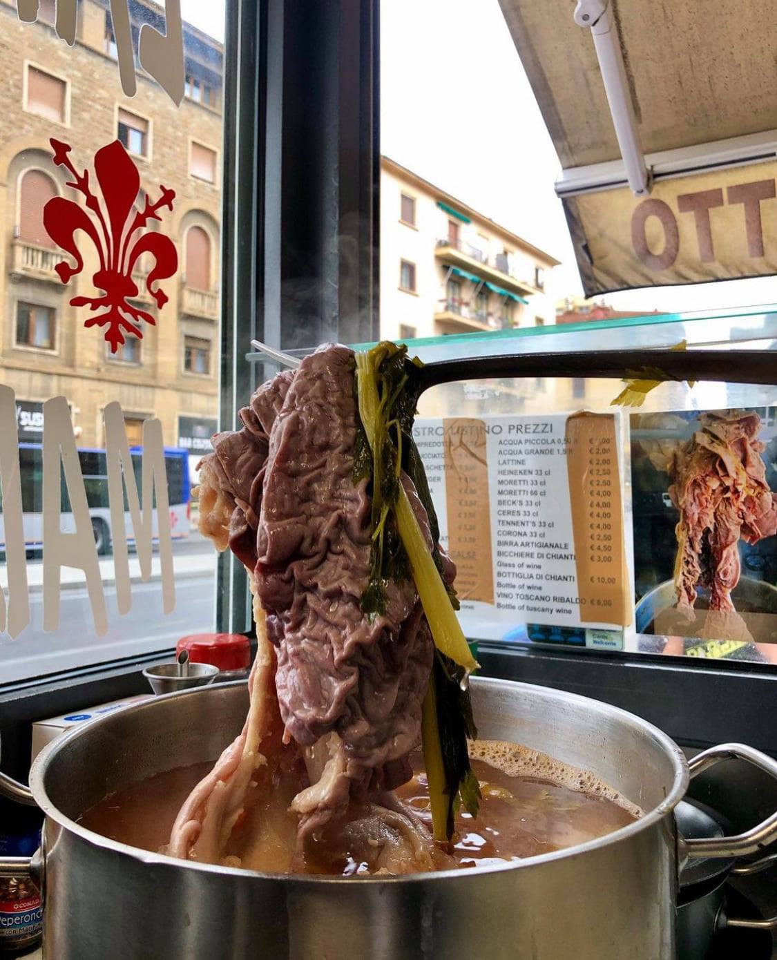 le cifre esorbitanti di un menù turistico. Prepariamo panini con carne proveniente dal mercato di San Lorenzo; ogni giorno troverai panini con salsiccia, hamburger di carne bovina, lampredotto, soft drinks e, durante il periodo estivo,macedonie di frutta